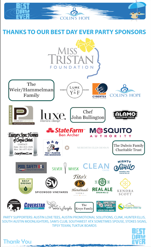 - Travis County Parks calls Colin’s Hope to help get a life jacket loaner station up and running at Hamilton Pool as well as Reimers Ranch Park